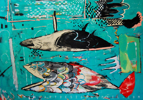 The artist that inspired me to become one myself was Matisse. All of my early work could be considered an amateur attempt at capturing the simple beauty of Matisse’s colors, subjects and compositions. The artist that has most influenced my current work is Jean Michel-Basquiat…and he’s the one that really put some gas in the “You can be an artist for real” engine. His work makes me look traditional and his energy struck a note that I still yearn to match. It was just something I’d never before seen…there was an excitement that seemed to be missing in traditional work….a vibrance or boldness that seemed lost in many modern masterpieces..and a subject matter that, while abstracted, was very much a real, every-day experience. He was the first artist I saw that I didn’t feel like I was looking into the past…