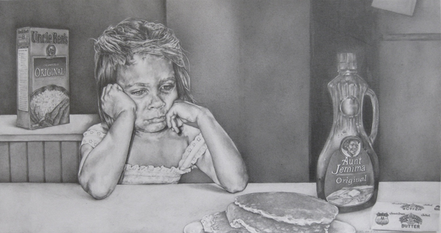 My work explores racial classification in the modern age and how it pertains to that of previous generations. I work mainly in graphite (on smooth bristol) so as to mimic the black/white theme of my work and to convey the gritty subject matter.