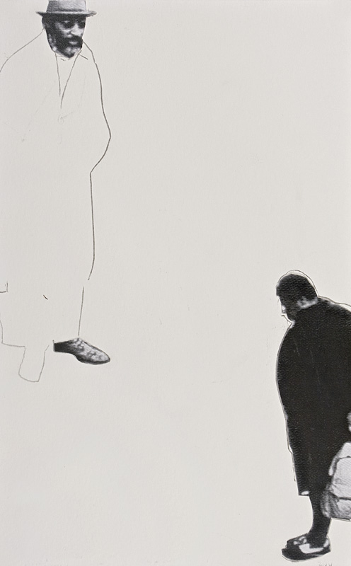 In creating Tattoo Trails, I was inspired by a photograph taken at a performance piece by David Hammons in 1983. I deconstructed the image and reconstructed my own narrative often using maps as a metaphor to represent a passage of time or sense of place. In several pieces, I have retraced parts of the map to indicate how we sometimes revisit our past to understand our present. Like tattoos, these recollections of time, place and experience remain permanently with us. They serve as a gentle reminder of our life’s journey.
