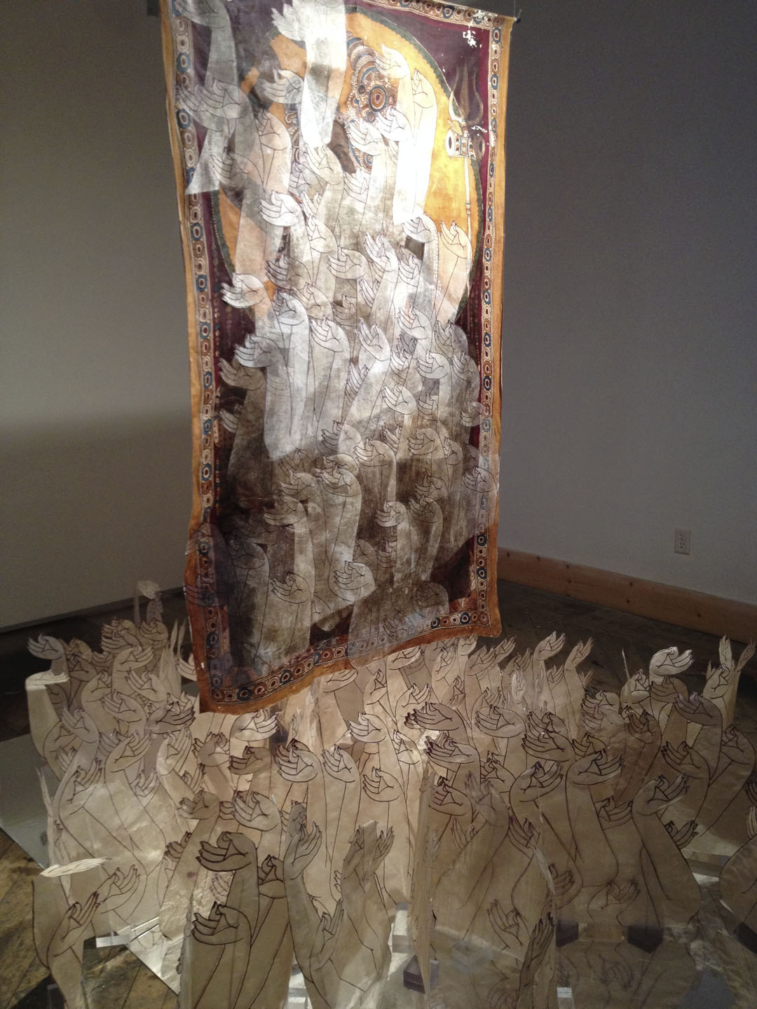 The course I teach at UWM- ART 150: Multicultural America and my work at Redline Milwaukee keeps me up to date on what is happening in the contemporary art field. Teaching Art 150 provides me with a space to foster cultural understanding among diverse racial groups through visual analysis and exposure to art production by artists of color. At Redline, I mentor two wonderful artists- Stefani Quam and Nina Ghanbharzadeh. Spending time with them, while problem solving, sharing technique and researching other relevant artists inevitably influences my work as well. I enjoy collaborating with other artists. Most recently, I co-curated the show Chasing Horizons with Christopher Willey (Villa Terrace Museum of Decorative Arts), collaborated with Jessica M. Ganger for Frame Story (Carroll University) and teamed up with Dara Larson for Transitions in Perspective: Myth and Mirror (Redline Milwaukee)