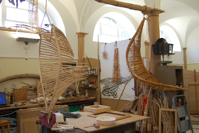Connecting one piece to the next the sculpture slowly appears giving the opportunity to refine the structure more precisely until the frame is complete and ready to attach the smaller detail.
