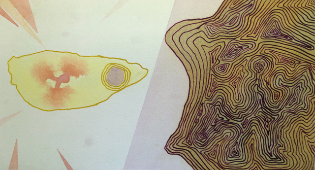 My main conceptual concern is for identity and change and how we deal with that. I use a drawing language that has grown out of the language of maps and cartography to make work about tracking change or making a map of the self and place, internal and external. I use water-based media because of the simplicity with which it layers and the short drying times. In the larger work I am thinking more about what is inside and what is outside. Acrylic paint is easy to manipulate if you work with it from the ingredients, not from the tube. To create the feeling of a wall I can make the paint chalky and lightless, or I can make it slick and shiny so the viewer bounces off of it.