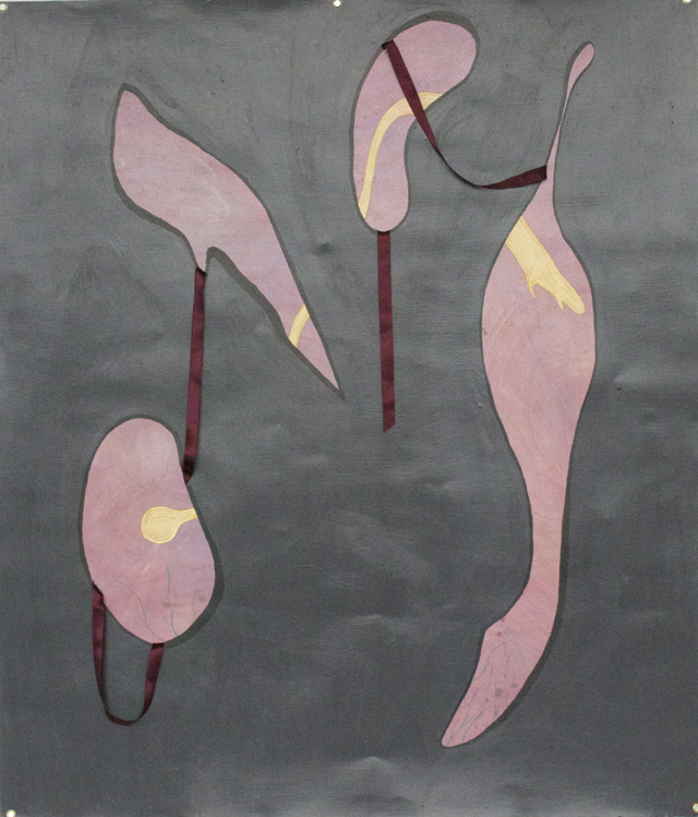 Exactly the Same, But Different, Acrylic and Ribbon on Paper, 4 feet 3 inches by, 3 feet 7.5 inches, 2014