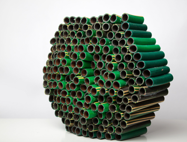 The result of this exploration often expresses, sometime ironically, two dominant themes: the anthropogenic landscape and the natural world. My work involves examining reclaimed or recycled objects, objects which are part of the anthropogenic landscape but sometimes derived from the natural world.