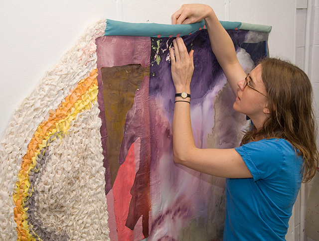 Erin E. Castellan received her MFA in Painting from Indiana University’s Henry Radford Hope School of Fine Arts and her BFA in Textile Design from the Rhode Island School of Design. Following a 2004 Post-Graduate Apprenticeship at the Fabric Workshop and Museum, Erin resided in Philadelphia for six years where she maintained a studio art practice and founded erineleanor, a knitwear company specializing in colorful hats, scarves, and gloves. From 2012-2013, Erin was an Artist-in-Residence at Arrowmont School of Arts and Crafts in Gatlinburg, Tennessee. Her interdisciplinary work incorporating painting and fiber media has been exhibited in museums and galleries across the country. She currently lives in Asheville, North Carolina.