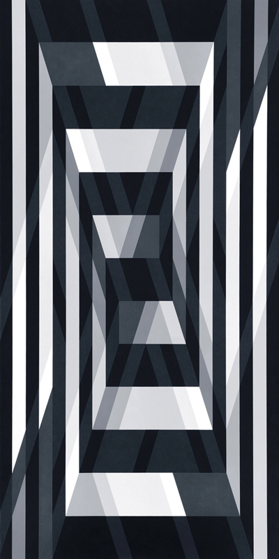 This means that each individual work of art does not only represent a carefully thought out geometric abstraction, but also serves as a tool to engage with the observer allowing different associations and emotional states. Put simply, to be drawn into the work and react to it. Through this interaction, the observer becomes trapped in two different systems of perception – mine and their own.