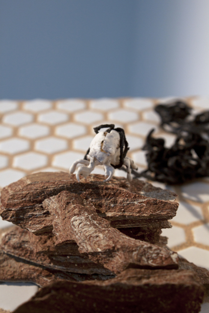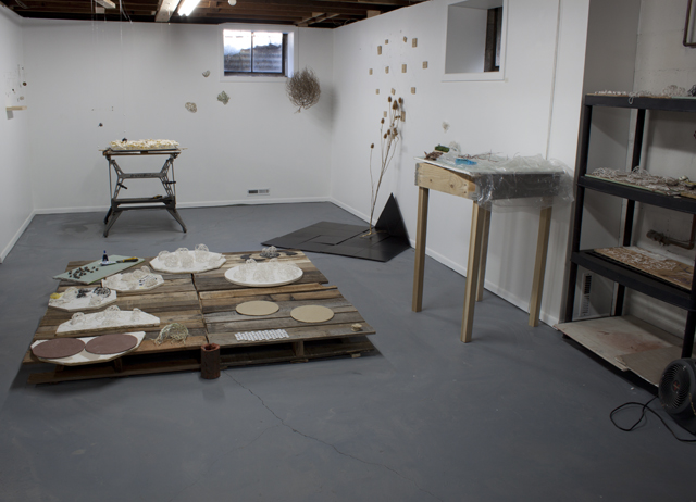 Again, a lot of my work is conceived outside of the studio. Right now I am primarily working out of my home. I have a secondary space in a local art center that I use more for teaching privately and doing office work (grading, writing, editing images). As someone who uses clay, I feel a little more bound to the traditional studio than other artists might because there are a lot of necessary tools and space issues that I deal with when I work. I can never have enough table space at the beginning of a project and because most of my work hangs, I can never have enough wall space either. I am lucky in that I also teach college ceramics and that gives me access to some extra resources that I would not have on my own. I occasionally make work at the school, although finding a moment of peace in the school studio is quite rare.