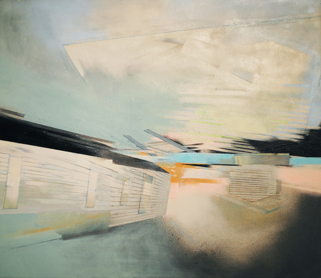My most recent work draws on the notion of impermanence as a built-in factor of all life. The paintings reference buildings that have suffered through one of the “Super Storms” that have hit across the world in the past couple of years. I like the idea that these man-made structures signify a loss of control, of impermanence. But they also signify our attempt to control the environment which results in excessive carbon emissions, which then results in storms that destroy these structures; a circle. This is the larger picture, however at its core are my own personal and recent life events. My own loss has showed me how vulnerable we are in this life, despite the structures, physical and mental, we try to employ for some attempt at control.