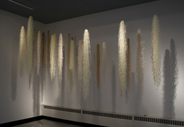 I am a morning person. The best time for me to make art is early morning through about 2:00. When working on installations utilizing sewing or attaching monofilament, I am able to also do this in the evenings. I usually use one weekend day at the studio and then other times when I can depending on my work schedule.