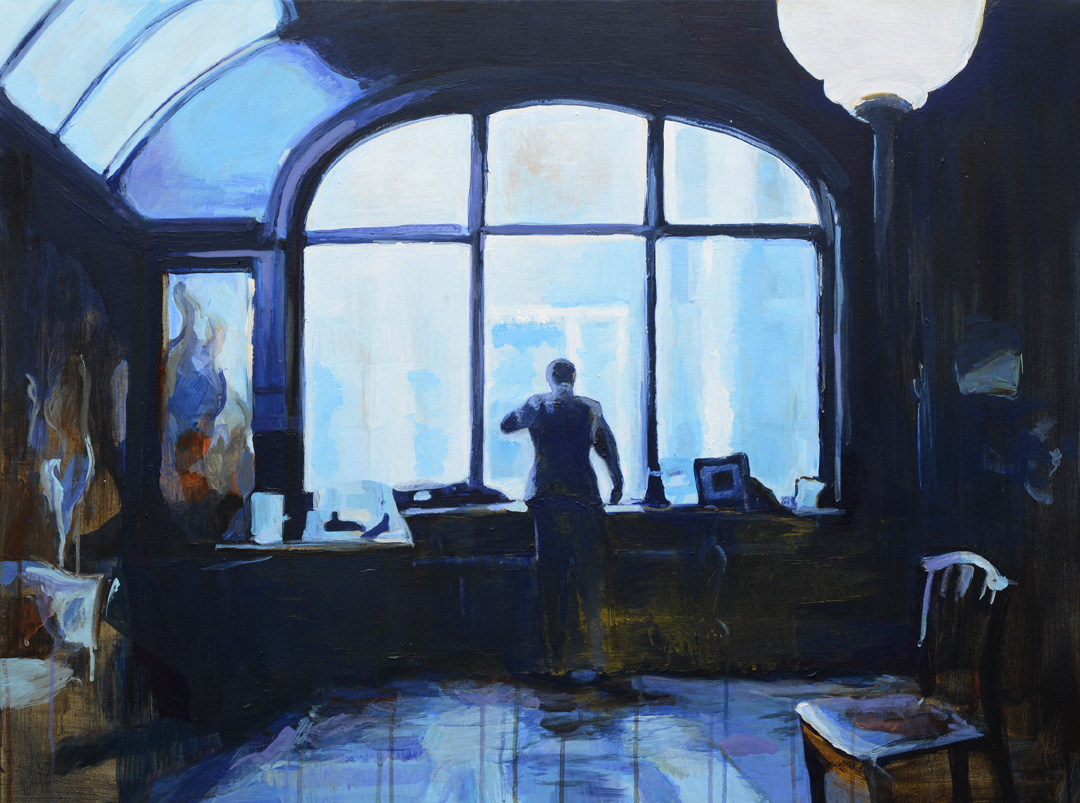 I used film stills from Ordinary People, The King’s Speech, and the HBO series In Treatment, as compositions for paintings. I overlaid washes and applied thick paint layers to transform specific figures into archetypal images exploring the human condition. The narrative is left up the viewers’ imagination in this series of haunting and moody paintings.