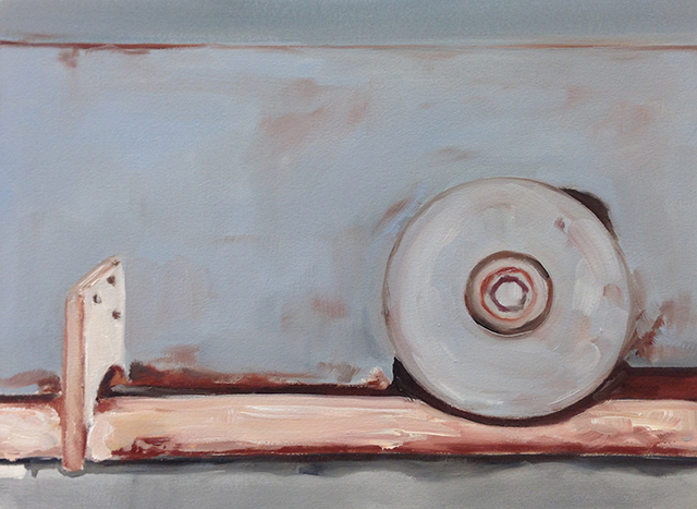 I draw and I paint with a number of different mediums, but at heart I am an oil painter. I love the smell, the viscosity, the colors, and the whole process of oil painting – it challenges my patience and allows for impulsiveness at the same time. In terms of subject matter I tend to have a varied practice, trying to utilize the appropriate visual metaphor and painting style for that which I seek to convey. My style evolves with the subject that I am painting, though I do tend to work in series, trying to fully consider ideas through repetition and investigating different vantage points. Topics that I continually explore include, meditative, atmospheric landscapes, the human body as landscape, and the banal and imperfect topographies of everyday life. In my practice I honor overlooked spaces and moments by exploring the humanity embedded within their flaws, and the ruin resulting from the passage of time, attempting to create a moment of pause, of contemplation and even of confusion. Most recently, I have been painting quite a few gutters, pipes and downspouts; though commonplace, they seem so human, bodily and abject.