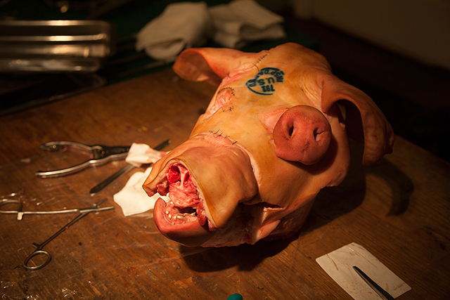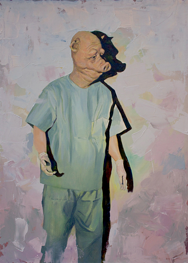 I tear, I cut, and I sew. My work is to operate plastic surgery on a pig’s head. By using metaphors I can intensify reality. The context of my work describes not only the shape of a phenomenon, but also one’s perspective about the cause of a cultural happening.