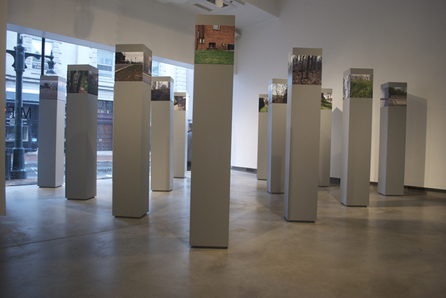 I use the camera as a means to understand space/place and how we interact with it. Sometime this involves working with a pre-determined space, such as the boundary lines of the city of Washington, DC. Other times, it has more to do with my own life, such as a postcard series documenting ceilings from all the different beds that I slept in during the course of a year. Working with both film and digital cameras, my projects always start photographically. That said, I am also often interested in alternative means of presentation. For example, for my MFA thesis project I mounted 12” x 12” photographs onto six-foot tall columns to create a sculptural installation.
