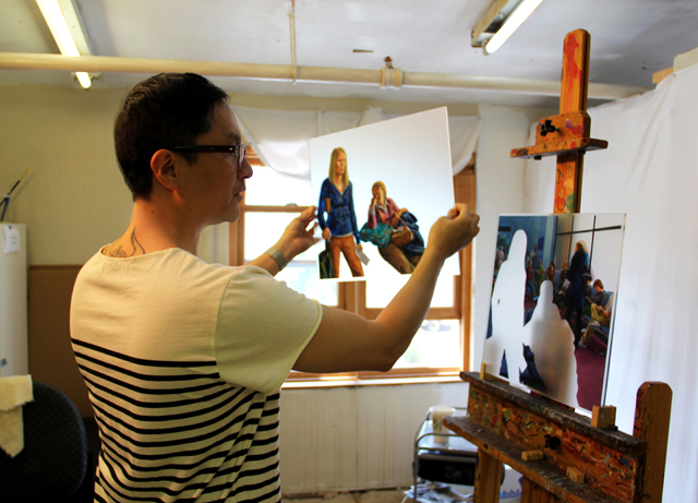 In tandem with my cultural background, my academic one is always present in my art practice. I have a Master’s degree in philosophy and theology; they have predisposed me to question and be critical of reality. It is natural then to correlate my personal experiences with notions I have gathered in those disciplines. I usually toy around with Heidegger’s understanding of experience of being, Nietzche’s description of eternal recurrence, and Tillich’s view of the situation of our times. These might not be explicit in my artwork, yet they heavily inform it. For instance, having Hegel’s dialectical method in mind, in my painting I juxtapose warm vs cool palettes, vigorous moments vs quiet ones, interiors vs exteriors, traditional vs inverted perspectives, and so forth. My goal is to expose viewers to these contrasts and dissonances. It is up to them to make a synthesis, to use Hegel’s nomenclature.