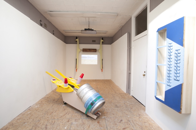 nstallation view of exhibition “Lucky Strike” (Mobilized Concession for Post-Bowlers, Murphy Bench, and Switch Board) at the Howard Art Project in Boston, photo by Suzi Grossman, 2013