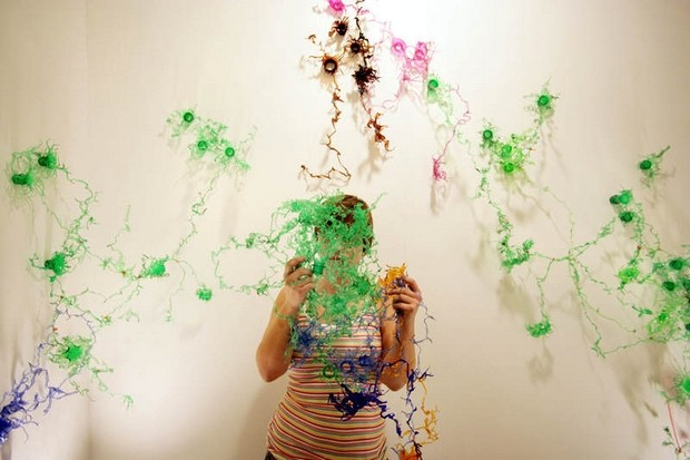 I’m primarily a pleasure artist, though perhaps a pensive one. In all of the whimsy, the meaning is wholehearted. So even that which is in jest is also genuine. The bodies of work vary in process and form, but there are common aesthetic and conceptual threads. The media ranges from drawing and mixed media on paper to sculpture and installation often utilizing manipulated everyday and upcycled materials.