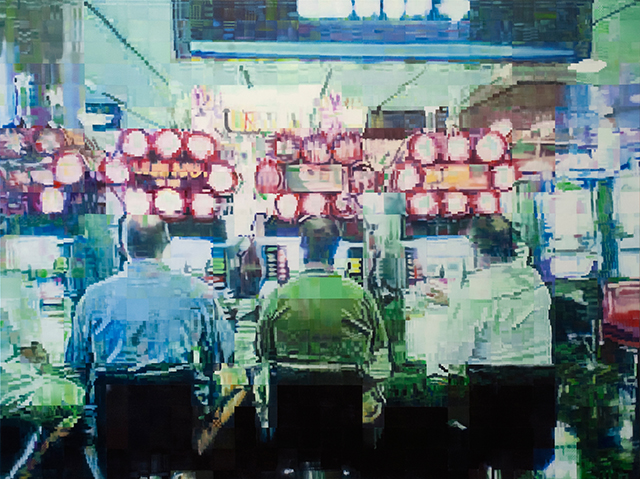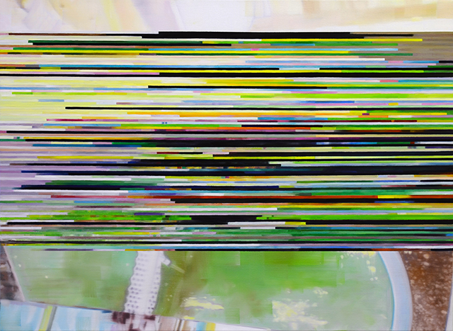 The bulk of my work over the past few years has been using found images and photographs mostly sourced from the internet which are treated to very systematic translations into paintings. An ongoing interest for me has been in exploring the digital aesthetic, complete with pixelation, errors and glitches. This comes partly out of an interest in the hidden structure underlying digital images and partly from a love of the purely abstract qualities of this visual noise.