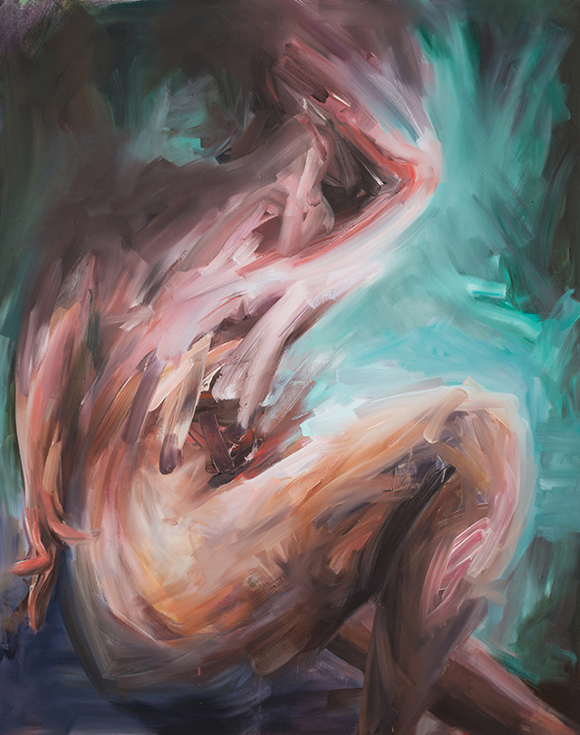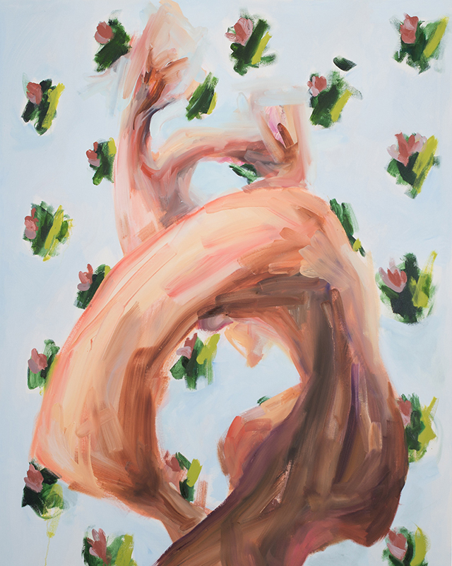 The way I think about my paintings is that I use the vocabulary of the human form – the colors of its flesh, its contortions and protrusions, its extensions,curves and crevices – as the components from which I develop my subjects. I’m interested in how we present the body and the human image when we try to pin it down in a still, two-dimensional image – particularly in painting – and how it becomes more complicated the less straightforward it is.