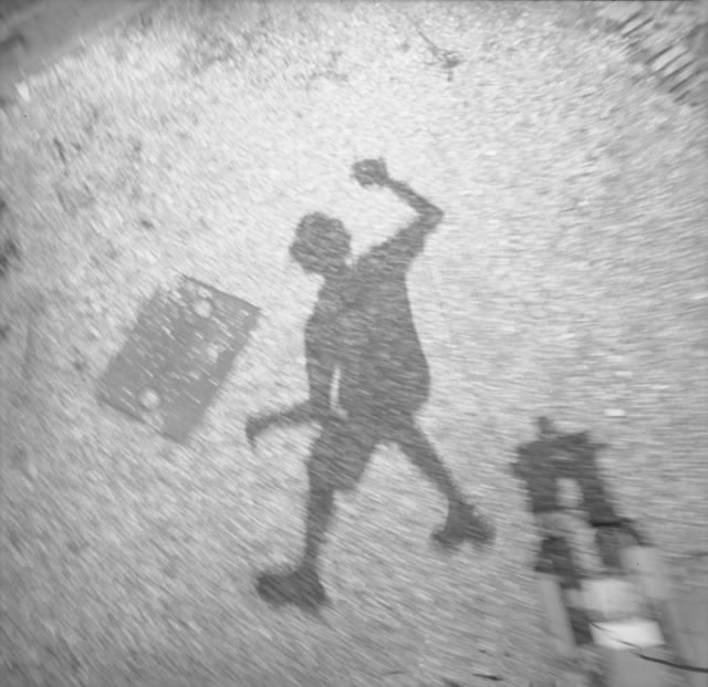 medium: monochrome analog MF photograph, artist draws with laser pointer into mirror