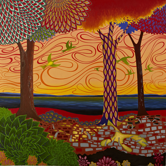 My work changed noticeably four years ago. I emerged from early motherhood with a strong desire to make the kind of work I am making now – much more personal, searching for a deeper connection with life and nature through art. I am still painting trees, but now they are like family to me, and the planet ceased to be this immense, abstract entity to become a very intimate place of bonding and discovery.