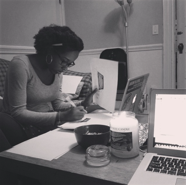 My studio practice consists of lots of research and coffee dates. I love engaging with other artists/social justice fighters to talk about the creation of new pieces. I am almost never in my physical studio space, instead opting for experiences and moments in time that I share with those around me.