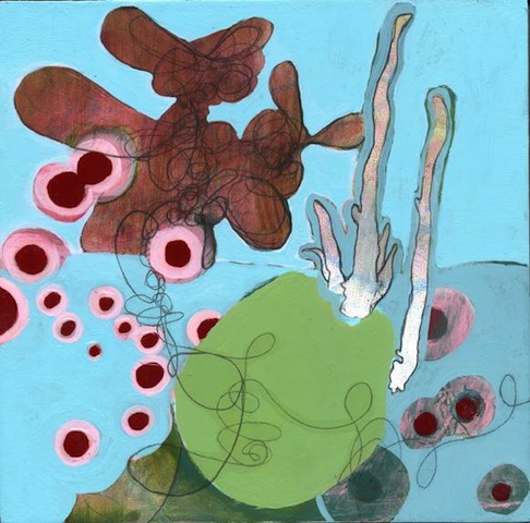 The biggest change over the past five years has been a reemergence of narrative elements in my work. Birds, bees, found objects, and plant elements have been incorporated in my mostly abstracted scenes. My concepts and interests have remained constant but my way of presenting them has definitely evolved.