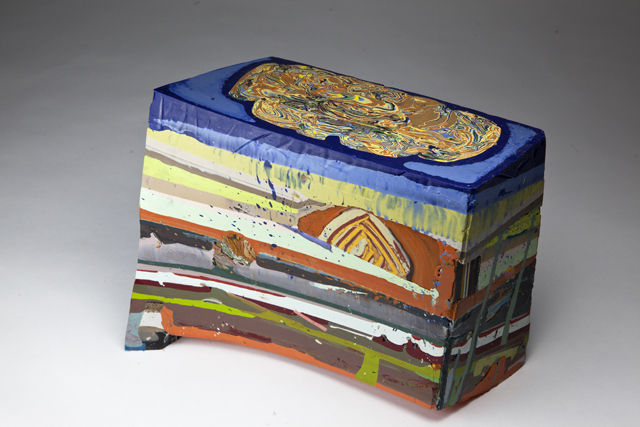 As my work has evolved to consider geologic time, so has my activity in the studio. It’s almost like an unseen performance. Acting on a playful intention to mimic the rock cycle, I put my work through the processes of heating, melting, cooling, weathering and sliding around (sometimes all the way across the country) – building up and breaking down in a dizzying cycle that never stops. My works are little chunks of output from this mechanism that is my studio practice.