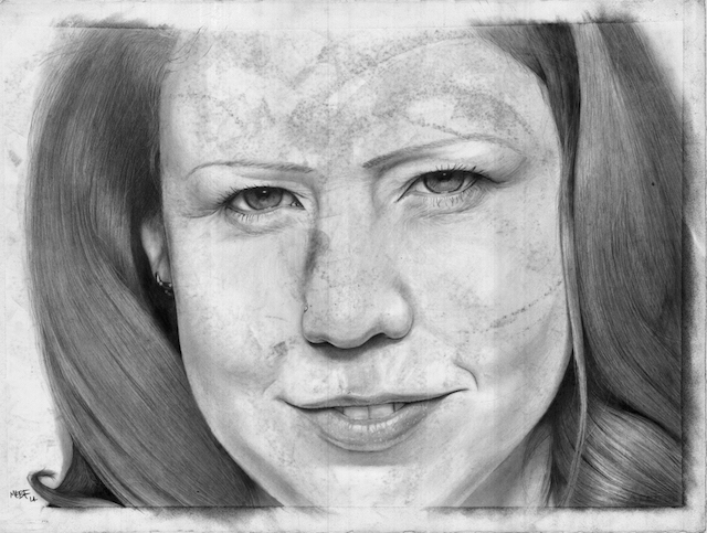 Of late, my work has been quite varied – different media, sizes, subjects. That said, it is always firmly planted in realism. Professionally, I am a medical illustrator and work in a Department of Neurosurgery. There I create anatomical and surgical images alongside health professionals for print and online use. Personally, I am about to reach my 500th drawing/painting in my small drawing-a-day series and I recently finished a series of large portraiture. My media-of-choice are pencil (Berol 3H/HB/4B are always in my arsenal), watercolor, Verithin colored pencils, and carbon dust. At work, I primarily draw and use digital media.