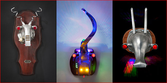 I scavenge for retro looking junk at scrap metal and salvage yards for material to create sci-fi sculptures.