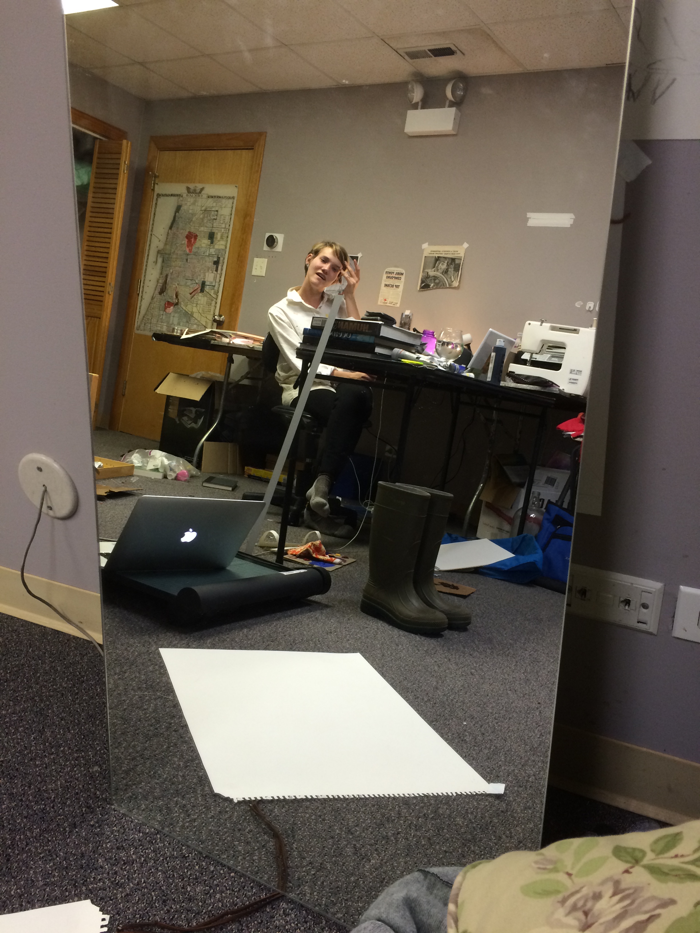 I love this question! My recent work has been heavily research-based, so “working” could mean anything from collaging in my studio, making a mold of an oil drill bit, conducting interviews, or buying halves of cows at local butchers.