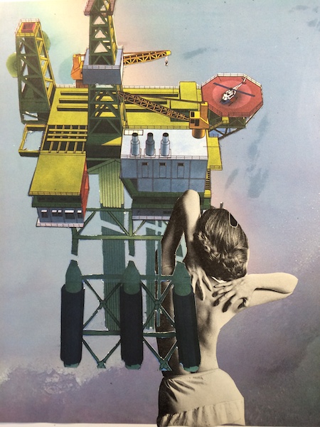 I’m an artist who lives and works in Chicago, IL. I work primarily in collage, performance and video. My current work is an investigation into the notoriously complex, elusive, political, and intoxicating industry that is the oil industry. Touching on issues of labor, finance, cultural variation, and industrial development, this project aims to expose the intricacies and complexities of the varying perspectives on the industry. It attempts to illuminate and hold in balance the vilification of the industry due to its harsh and real effects on the environment and the quality of many lives, while also illuminating the necessity of the industry and the ethical, intelligent and efficient practices already in place. This project is a collaboration with Toby Wright, petroleum geologist and oil man.