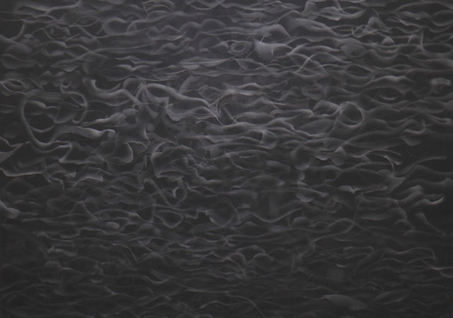 The Mouth is an Opening, assorted metallic wool pads, silverpoint, on black Plike paper, 25” x 40” , 2015
