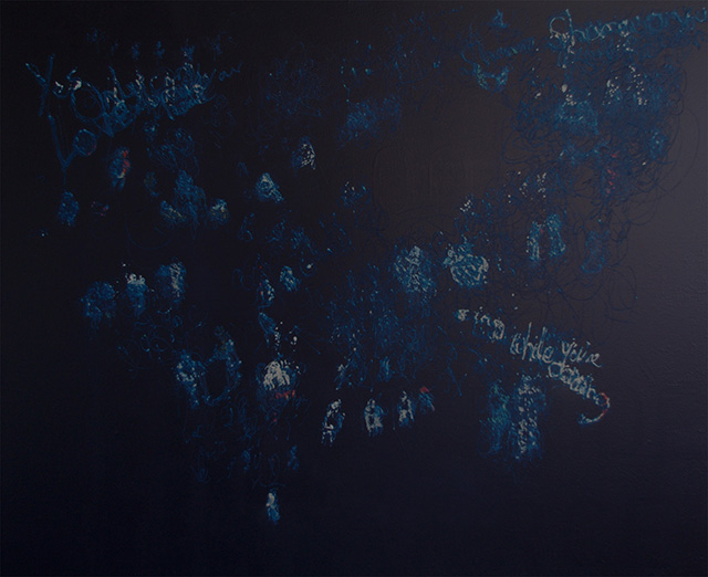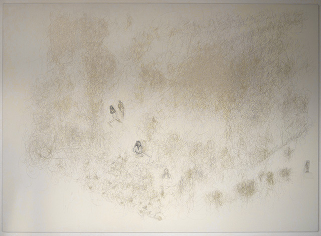 The medium I work with has remained the same for the last six years. I have worked with silverpoint for 18 years and I will be featured in the catalogue for the forthcoming exhibition,” Drawing with Silver and Gold at The National Gallery of Art in Washington and The British Museum London, and also exhibited in contemporary exhibitions of silverpoint in USA and London. I also have worked for 15 years excavating paintings with a drill while viewing and combining performances captured on film. Through making these drawn paintings I become able to edit and resolve my video work. Recently my installations have evolved to include glass panels that I lean across my paintings, partially glazing them to reflect my video projection and the viewer.
