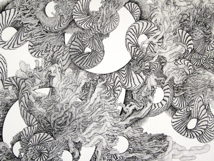 In college I pursued a triple minor in curatorial studies, creative writing with a focus on poetry, and art history. I guess I can still utilize any of three if I muster up the will. I’ve often daydreamed about becoming a music or art critic or maybe even a teacher. I’m too much of a people pleaser to crit anyone’s work beyond that of my friends and acquaintances and don’t want to have to deal with kids who are worse students than I was. So those three are pretty unrealistic. Another entirely quixotic (and lesser known) wish I’ve had since adolescence is to become a neurosurgeon. Perhaps I satisfy that desire with the amount of dexterity required for my work…and I’ve been told parts of my drawings look like scrambled brains. In truth, I’d never trade my studio practice for anything of those things. As I said earlier, don’t fight what you love.