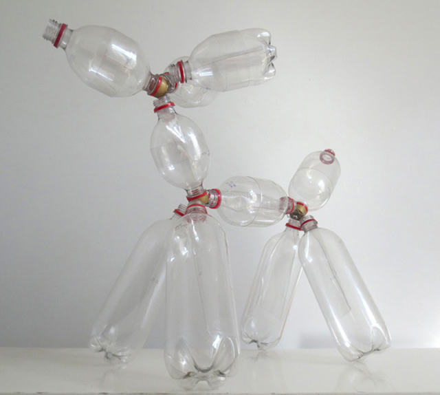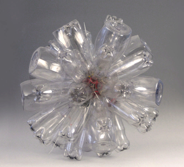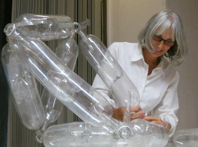 For ten years I have re-purposed plastic bottles and metal castoffs into playful sculptures and public art. I developed the “plastic bottle building-toy system,” a method similar to an Erector set or Lincoln logs. I fashion connectors and segments out of plastic bottles to make sculptures. I also collaborate with others to make outdoor installations from large accumulations of plastic bottles.