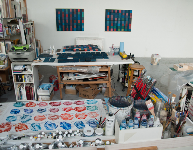 My studio practice has varied over time, most recently balancing between time spent teaching and time dedicated to my studio practice. Generally, though, I try to be in the studio about 30 hours a week, where in addition to painting I do a lot of writing, which informs my painting.