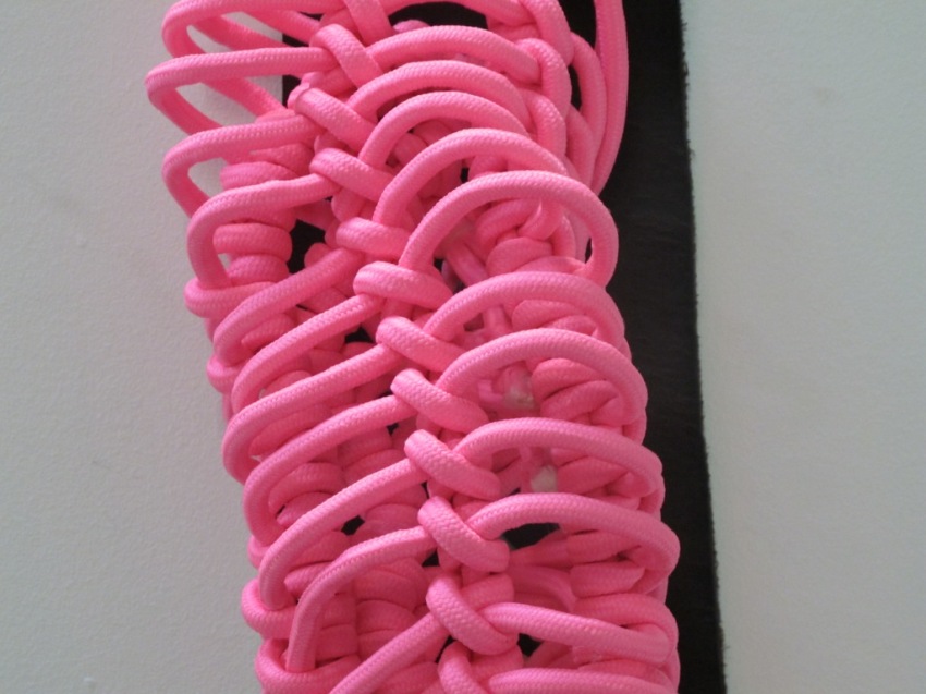 Overall, my practice explores typologies of feminism, in particular the exploration of new ontologies beyond binary subjectivities. The conjuncture of craft practices and minimalist form activates relationships of movement, embodiment and affect. Using recycled materials gleaned from industrial processes, the material properties of rubber and plastic such as resistance, elasticity and insulation are exploited in conjunction with industrial hardware such as rope, and stainless steel. These explorations investigate, through the conceptual and material metaphors of knotting, winding and tension, the articulation of forces of bodies in space, forces between bodies and the interval in between. Infrastructures of the built environment such as balustrades and seat belts are transformed into aesthetic constructions whilst colour plays with gender roles and associations. These convergences seek to propose a potential aesthetics of relatedness.