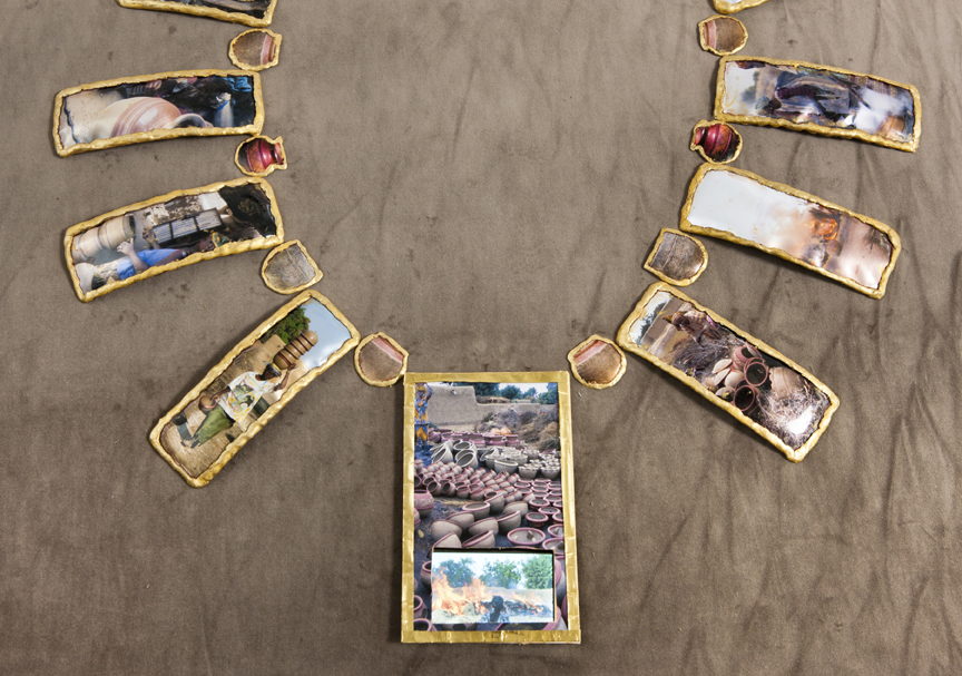 Janet participated in The Experiment in International Living Program in 1973 and spent nearly a year in West Africa, igniting her life-long connection with the continent and particularly West Africa. Janet Goldner returned to West Africa as a Fulbright fellow in 1994-95, working in Mali with potters, metalsmiths, and contemporary artists. During her concentrated eight months of research, Janet’s many African experiences began to coalesce and emerge in her work. As a result of these experiences, she combines Western and non-Western images and ideas, issues of cultural identity, and responses to her own layered American cultural identity.