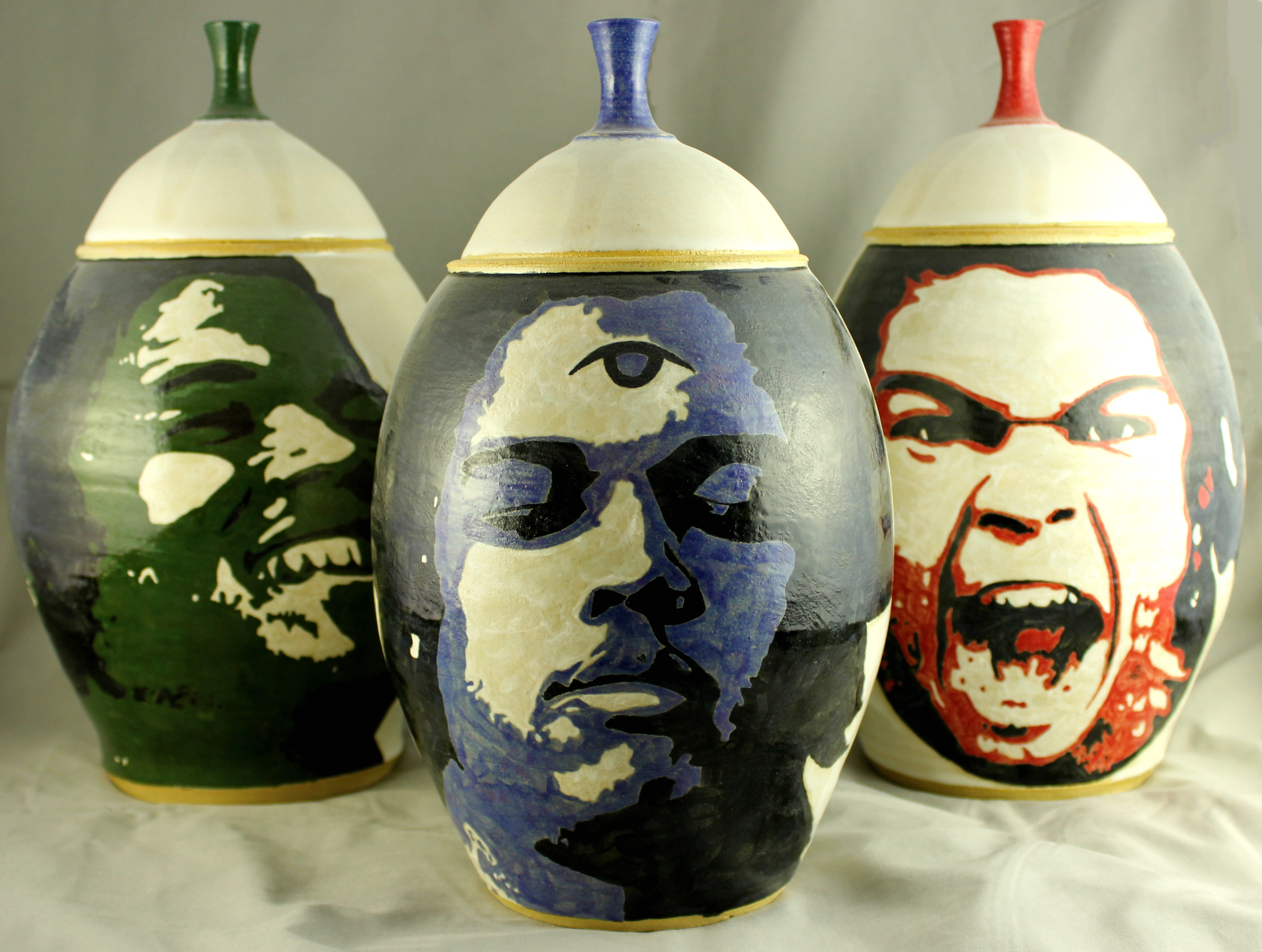 While in school I majored in Philosophy. I also took courses on Ancient Greece and Rome, Religious Studies, sociology, and anthropology. These classes as well as my interest in music, specifically hip-hop, r&b, funk, electronic, shaped the majority of the concepts behind my work. I see my work as trying to capture specific emotional/ mental states, that I experience in the attempt to reflect them back to the audience. For example, The three jars that make up my self portrait are meant to capture as much of my inner self as possible. Each Jar has a name: Rage, Peace, and Ecstasy. They are meant to each capture a particular part of me, each playing an important role in my life. I believe that life itself would not be as fulfilling without all three. This does not only hold true for myself but I think this also holds true for each individual that sees the piece and for society on the whole. Part of the meaning in my pieces is on an individual level and part on a macro/universal level. My hope is that as I continue my work I can broaden the ways I can capture both types of meanings.