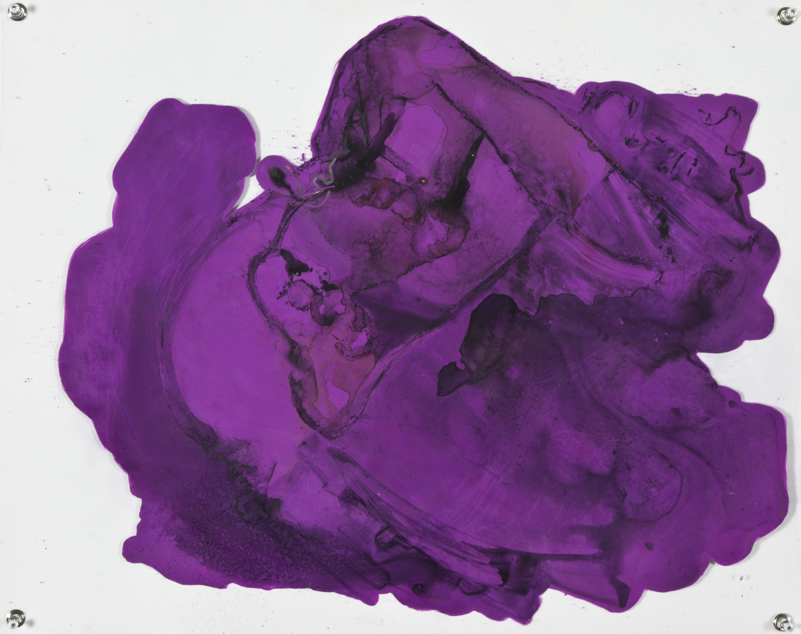Dismantled Almosts, 2014, watercolor and acrylic on grommeted mylar, 18×24”