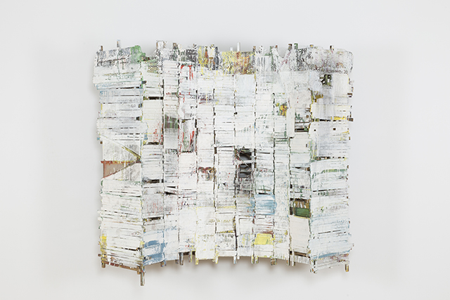 I make large wall based sculptures addressing concerns of landscape and environment. They exist somewhere between abstraction and realism. The work is created from widely available materials such as plywood, 2x4s and cardboard. The works reference archetypal moments within the landscape and architectural spaces, asking the viewer to examine personal and collective histories as well as their own place in time.