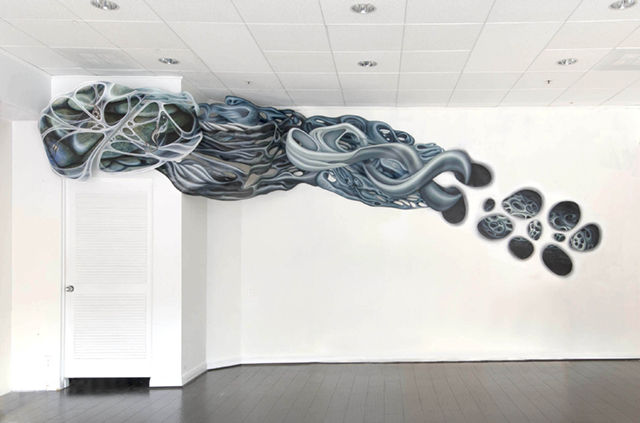 In my drawings and paintings, I depict complex yet often subtle energies that animate living things. Using depictions of flora as symbols, flowers breathe, pushing and pulling energies along the edge between life and death. I use ideas of thresholds and portals, to examine the transitions between these realms. My installation work draws from the same ideas, while bringing the artwork into the physical space of the viewer. Gallery walls serve as the metaphorical threshold between life and death, the visible and invisible, tangible and intangible.