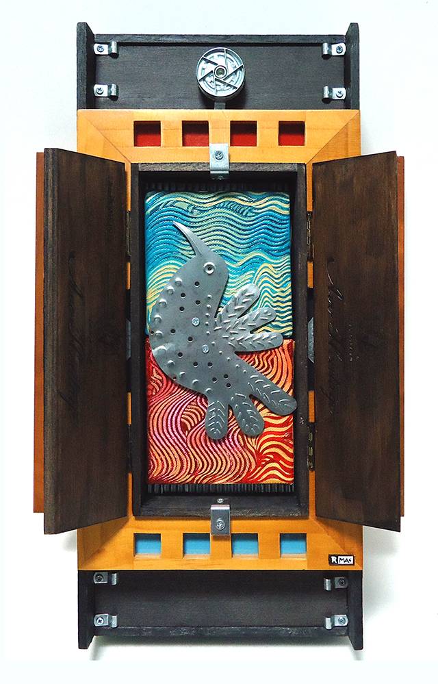 From pure paintings I’ve started to add materials and then, they become mixed media. Later the found objects came and my art became tridimensional