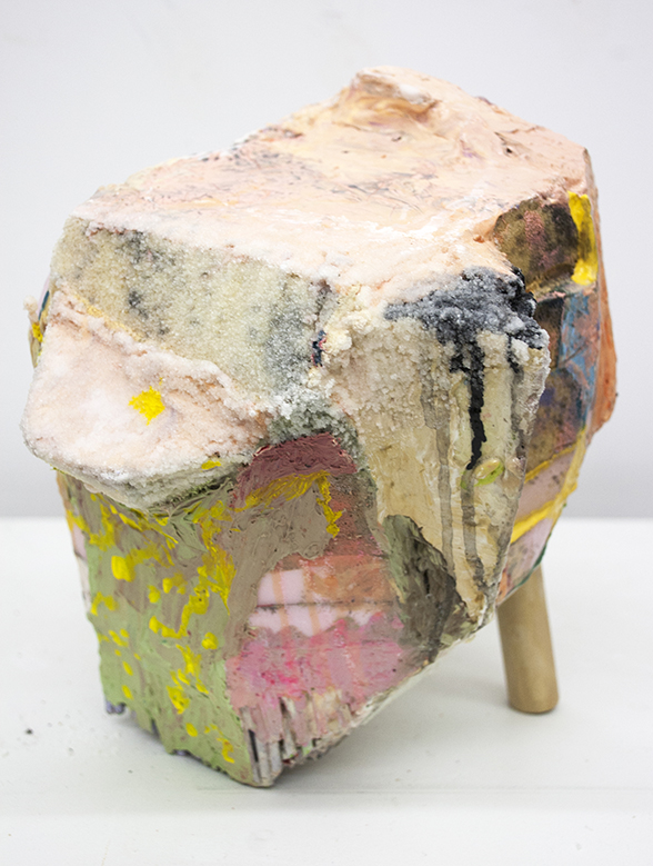 I’ve had many different types of studios and have moved due to outside factors that usually have nothing to do with what’s happening in the studio. This con- sistent instability of space, have changed the meaning of studio from a physical space to a state of mind. To be in the studio is to be in the mind frame of making, the process of making or in the mode to act on inspiration.