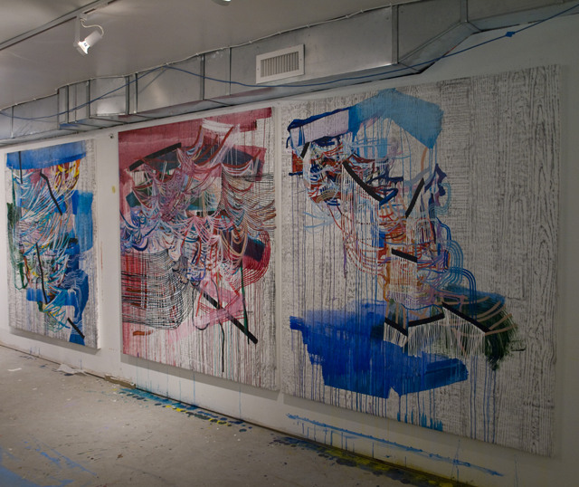 Although it seems obvious now, I did not envision how intertwined my studio practice and every day life as a mother and wife would be. When I finished graduate school I married my longtime boyfriend who happened to be a college football coach. Although football and painting are worlds apart, they are both very consuming and there are always a lot of unknowns. That worked for us and I assumed my life would be this unique combination of studio and stadium. My husband died of cancer at 43 and so now I am a single mother of teenagers which is certainly not a role I ever imagined. Having my studio at home makes it easier to juggle and join the two worlds I’m living in. When they agree, I bring my kids along to galleries, museums and openings and I love hearing their insights- and on occasion they come into the studio and make things while I am working.