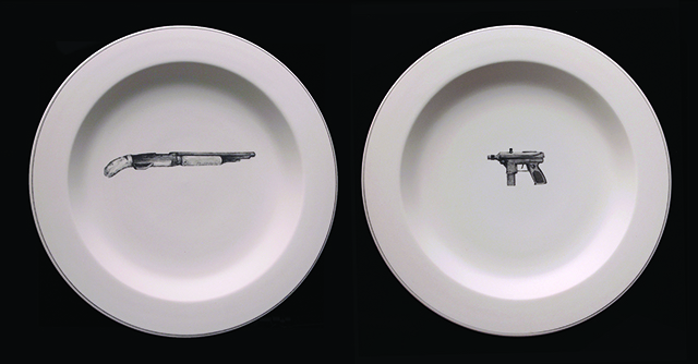 1990’s Tragedy Commemorative Series: Columbine, Eric and Dylan, porcelain, slip, 12x26x2inxhes, 2014