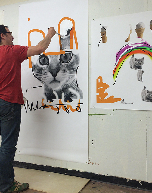 My studio practice is fairly traditional. I work in a multitude of locations, my personal studio, school, basement, dinning room, front porch, outdoors or in the gallery itself. Depending on the type of project that I have going on at the time often dictates which of these spaces will be utilized and viewed as “studio”. I view most of my life as “being in the studio” so regardless of the physical space, in someways I am am always in the studio mentally.