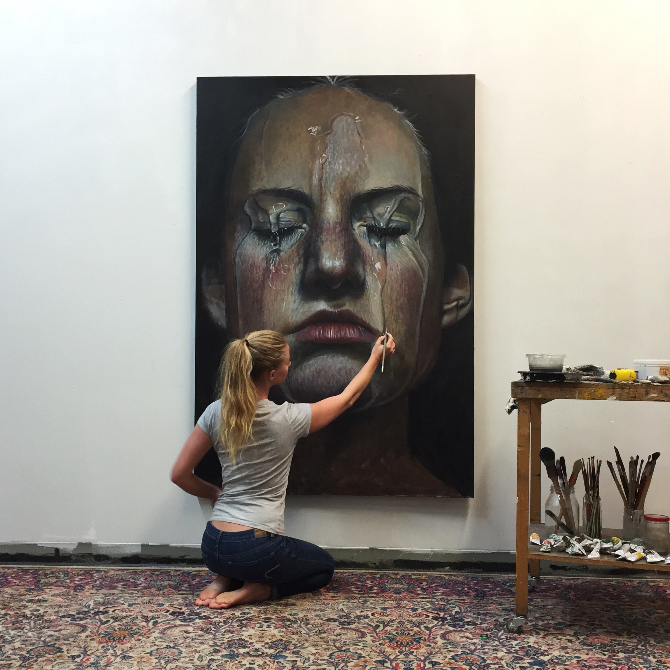 I had always been creative growing up, but I had not painted until my senior year of high school. This class changed my life. Though I began college as a politics major, I eventually succumbed to a different calling and finished with a double major in both art and conflict transformation. Pursuing art later in college had a deep impact on the work I do. Initially I worked to hard to charge my paintings with political agendas. It was senior year that I discovered a greater interest in the power of observing a human and translating it to paint rather than pressing upon an image or subject my own purpose.