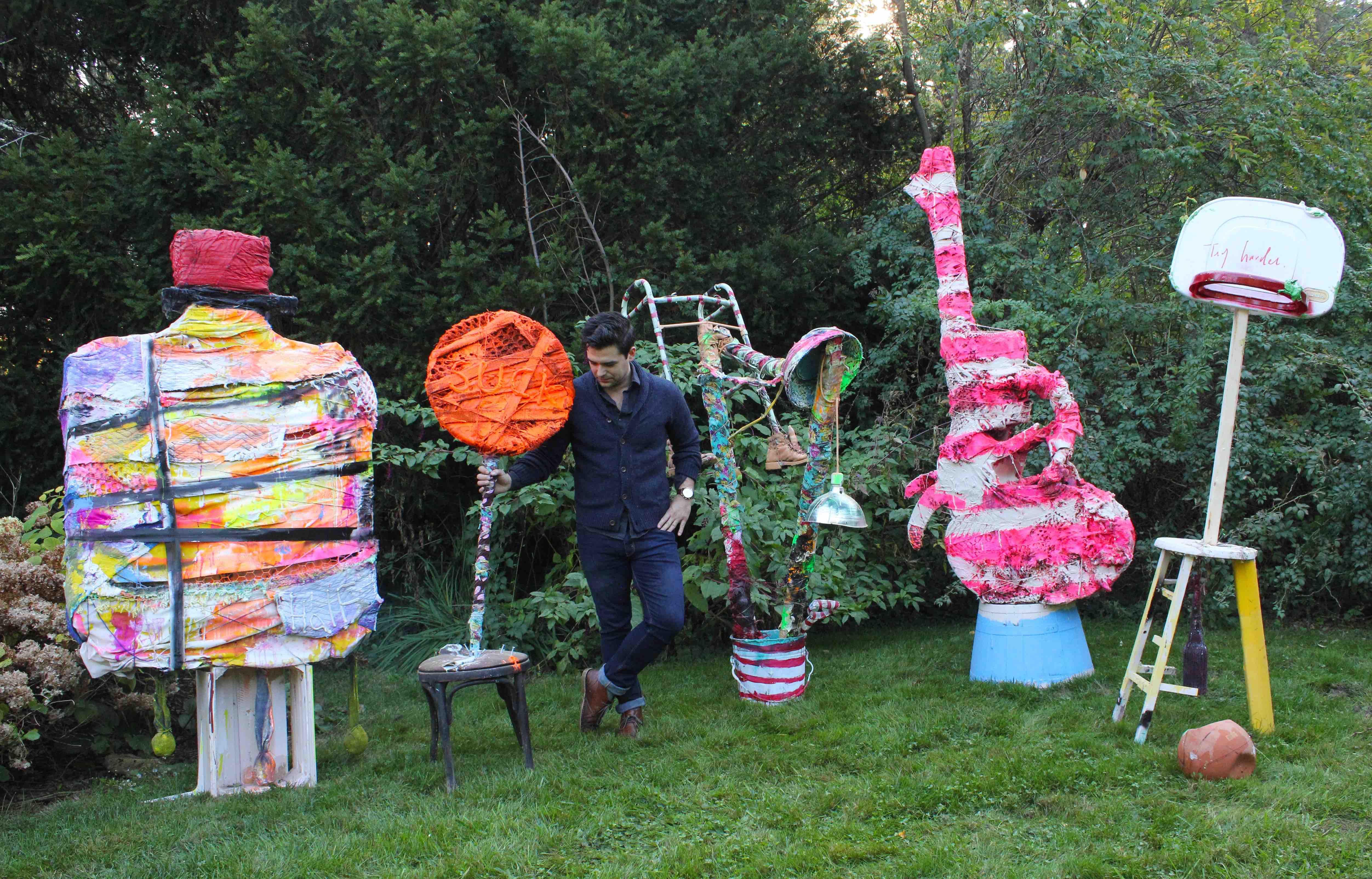 I initially began just making abstract paintings and small collages. That evolved into making sculptures informed by the paintings. Now the sculptures usually come first and then the paintings. Although deriving content from the heavy emphasis on materials has remained a constant.