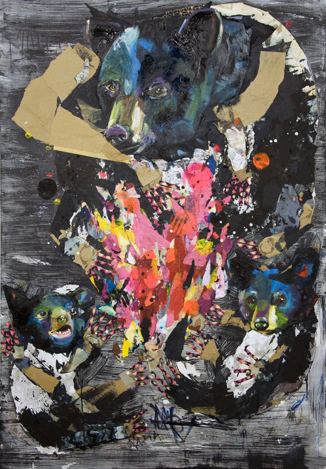 I use to illustrate black and white folk tales and I use to abstractly collage paint, but I didn’t know how to merge the two, and then within one year, I had four people influence me in different ways that allowed me to blend it all together. Franklyn Liegel and Bonita Helmer really allowed me to grow in my painting style, by pushing the sub context of abstraction and collage. Rebecca Campbell who mentored me, and pushed me to get a studio, which drastically changed my practice, from painting one painting a month in my dinky studio, to cranking out four paintings at a time, and really being able to stand back and contemplate on them as a whole, and fellow artist Emily Silver, who really reminded me of who I am as a collage painter. Those four really spurred me into my niche today.
